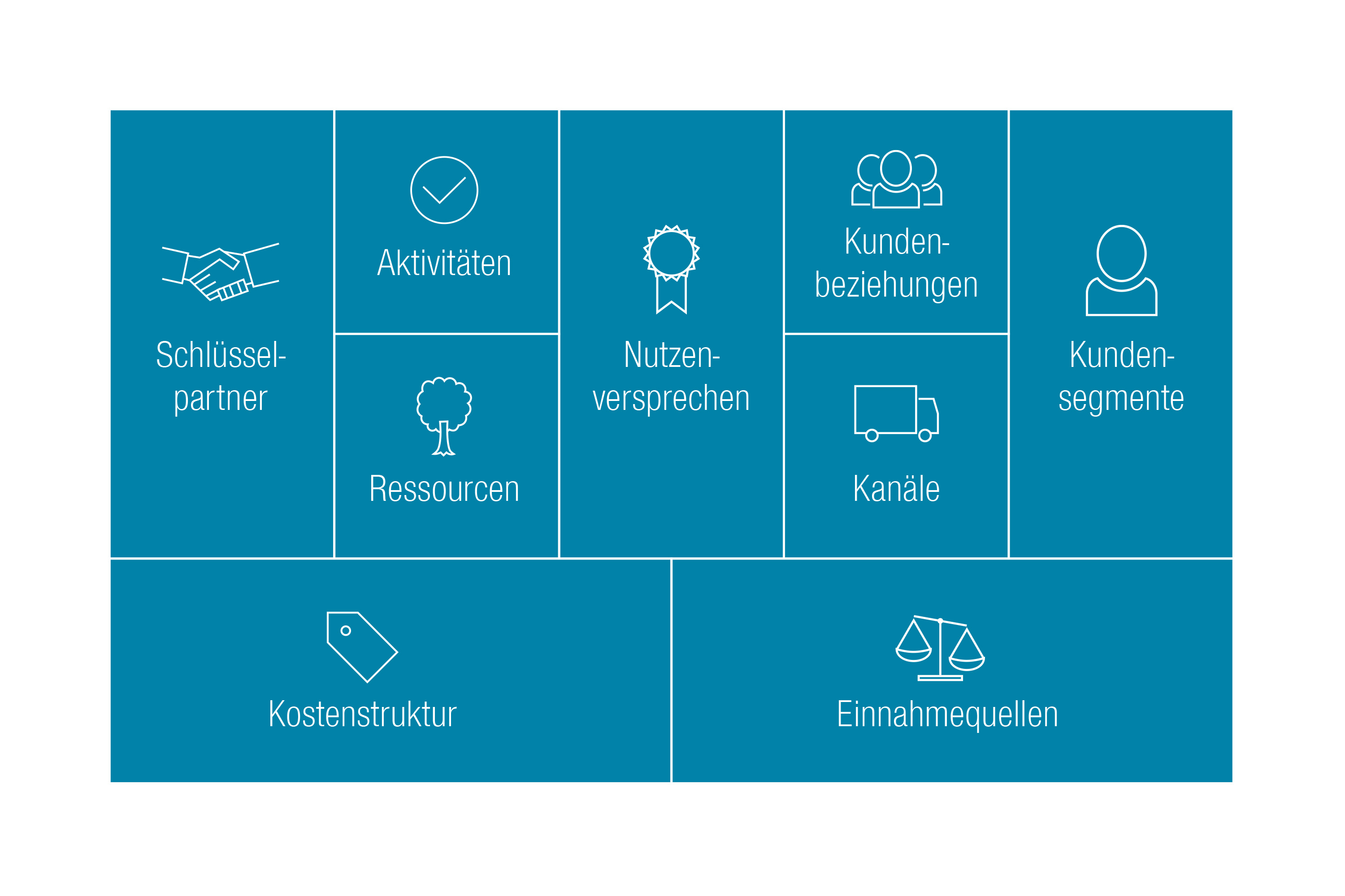 Caption 1:  Besides improving internal processes, companies should focus on developing business models. Various aids, such as the Business Model Canvas, can be used to describe the key components and correlations in a company.